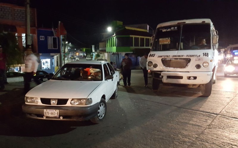 Martínez de la Torre, Ver.-Un accidente entre un microbús y un Tsuru dejó como saldo cuantiosos daños materiales luego que se impactaran en Villa Independencia, a unos metros de El Triángulo, por donde se desplazaban ambas unidades.
