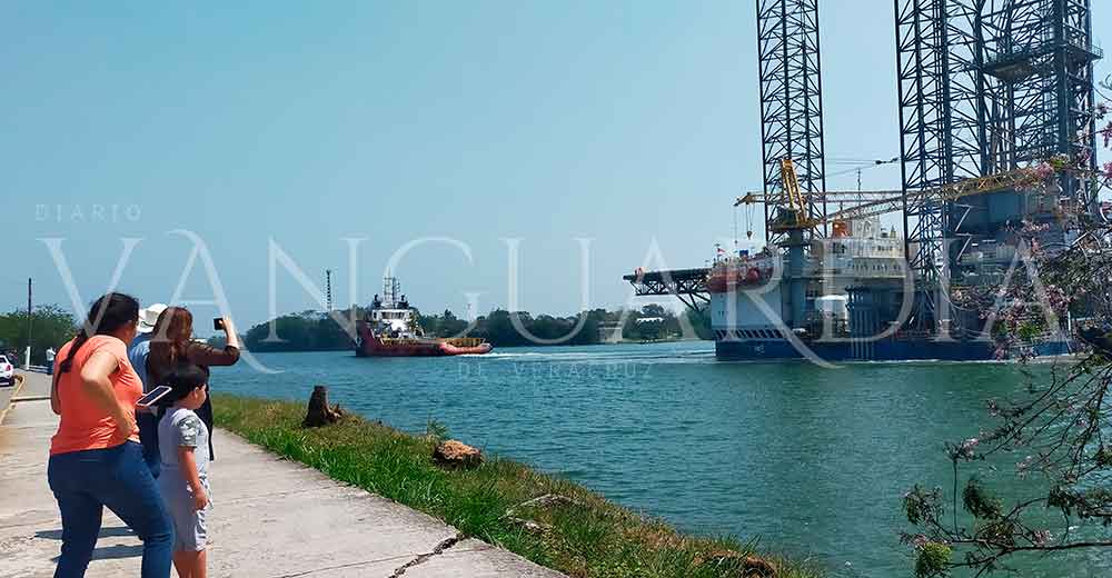 Además del letrero de Tuxpan y los atardeceres, la enorme estructura es una de las cosas que más fotografiaban los turistas y locales, pero este día causó asombro y curiosidad al ver la imponente plataforma navegar por el río Tuxpan con ayuda de tres remolcadores hacia su próximo destino.