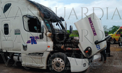 Pueblo Viejo, Ver.- Un cortocircuito en el sistema eléctrico de un tráiler, generó espectacular incendio en el motor y la cabina de la unidad, el siniestro...
